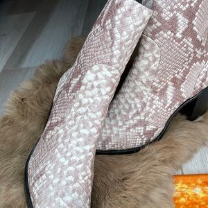 Like-new heeled boots in faux snake