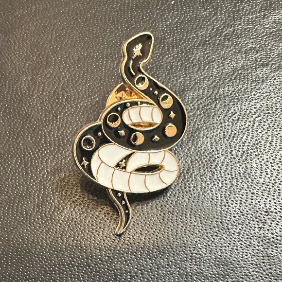 Brand new black white gold snake pin with celestial elements approx 1”