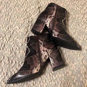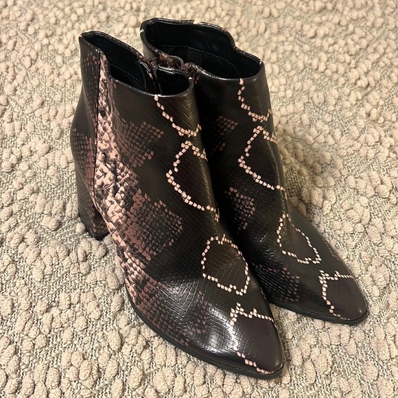 Beautiful snake print booties in excellent condition. Worn a few times, no rips or tears!
