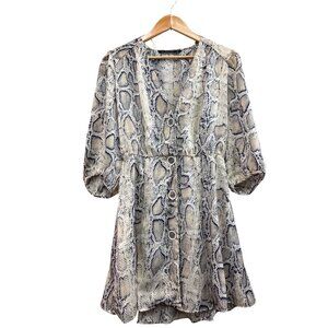 Snake Print Button-Front V-Neck Mini Dress With Puff Sleeves By Zara Basic