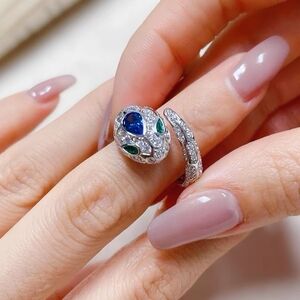 Elegant and decent earrings Super beautiful single product Silver snake pattern with sterling silver micro-inlay craftsmanship Extraordinary design and matching Super beautiful personality style Fashionable and generous Beautiful Opening one size fits all