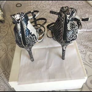 Sophia & Lee Snake Skin Print Sandals Black And White