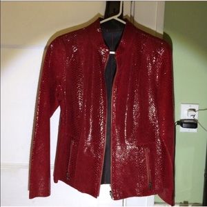 I only wore it once, but I lost the tag when I took it off. That's the original tag though. It fits perfect and is true to size! Red side it snake inside is leather look!