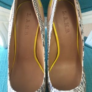 Snake print and yellow L.A.M.B. Heels! Like new!
