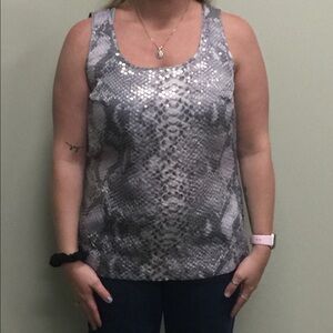Snake skin print clear sequins gray/white tank top versatile size Small Swifty