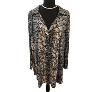 Excellent Condition long sleeve snake skin pattern button down tunic. It’s 28” armpit to armpit and 35” long. PLEASE MEASURE YOURSELF BEFORE ORDERING.