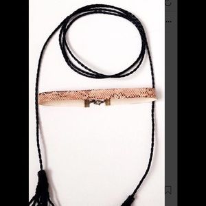 One faux snakeskin choker 1inch thick & one black braided cord wrap necklace with black tassels