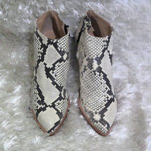 In EUC! Beautiful booties by Italian designer Alberto Zago. In a python print.
