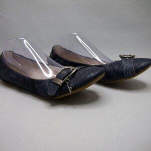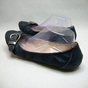 Snakeskin Ballet Flats in Navy Blue Round Toe with Buckle & Charm Size 11 Python