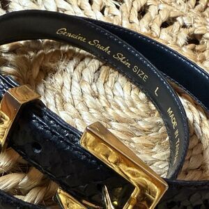 Snakeskin Black Belt 35" Sheka Golded Square buckle Leather Skinny