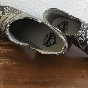 Super comfy heeled booties. Faux snakeskin is fun gets lots of compliments. Only worn a few times as they are just a little big on me. These are easy to clean too.