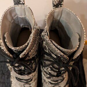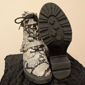 Snakeskin 'Shoe Dazzle' heeled boots. Selling these cheap because there is one noticable little spot on the right outer heel that the "snakeskin" is peeling. ***Pictured! They are still cute though and have some life left in them. Size 6 women's