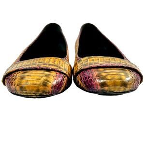 Snakeskin Flat Dress Shoes Size 6 Exotic Italian Leather Pink Gold Ballet Chic