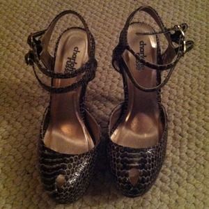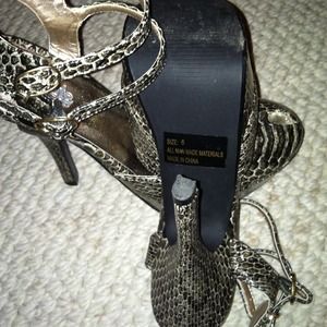5 inch heel with 1.5 platform. Cute with some capris and a flowy top! Only wore once for a night out!