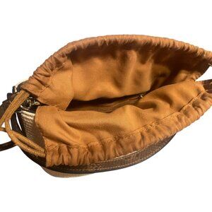 Cute little Bag, well made with Snakeskin accents & drawstring top! Does have a inside zipper pouch as well as small pocket!