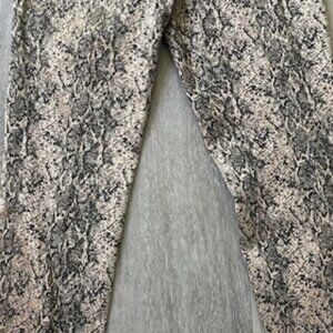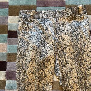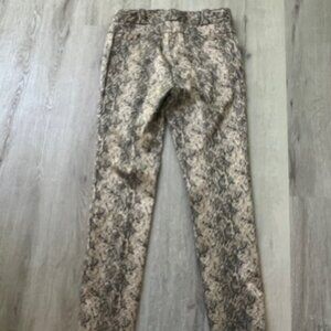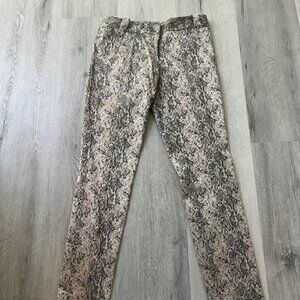 Be stylish in these pants with a snakeskin print. Color is cream and light brown. Fabric is made of polyester, cotton and spandex. Size 8. Pants are in a great condition.