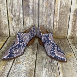 Step out in style with these Lucky Brand Tabea women's booties. The ankle boots feature a pointed toe and a slip-on closure for easy wear. The beige color and snakeskin print give them a unique and trendy look that is perfect for any occasion.