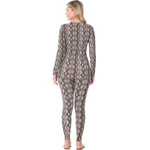 Snakeskin Print Brushed Microfiber Top & Leggings Set (Tan Brown)-Large