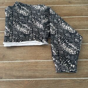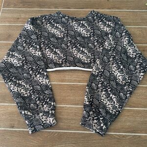 Stylish snakeskin print cropped sweater. Features long sleeves and a trendy design.