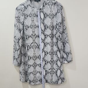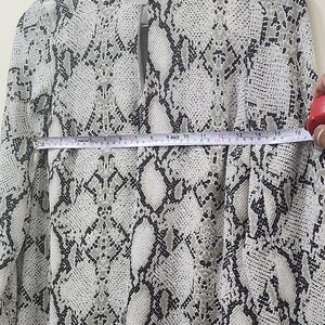 This mini dress features a trendy snakeskin print, offering a bold yet neutral aesthetic. Designed with a boxy fit, it provides a comfortable and stylish look for any occasion. The lightweight fabric ensures a breezy feel, making it a versatile addition to your wardrobe pit to pit 18 large 29