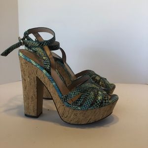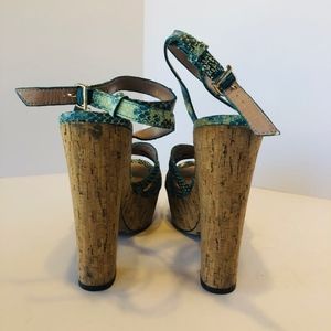 Snakeskin Print Platform Cork Heeled Sandals Sz9.5