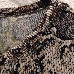 Polyester snakeskin print tunic by Studio JPR. Fabric has tiny Fortuny pleating. Size Medium. Hits at upper thigh.