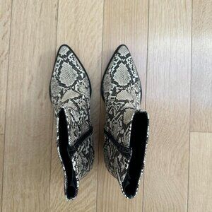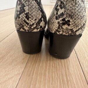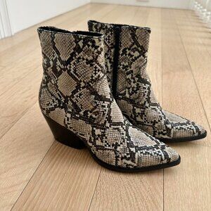 Snakeskin ankle boots. Western style, purchased from Need Supply (rip). Size 7, worn maybe once (scuffing shown in last picture)