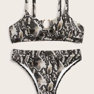 Snakeskin cut out Print High Waisted Beach Bikini