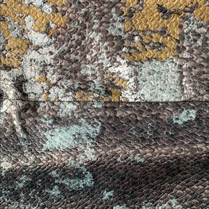 Beautiful blue silver gold metallic textured snakeskin print dress. Fully lined. Empire waist and pleating detail. Knee length, zipper closure
