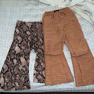 Snakeskin flared leggings nude tan cut out flared bootcut pants size S
