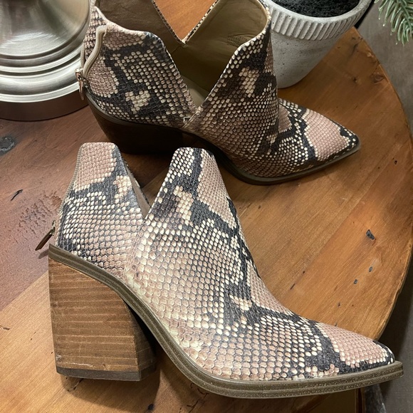 Snakeskin patterned booties
