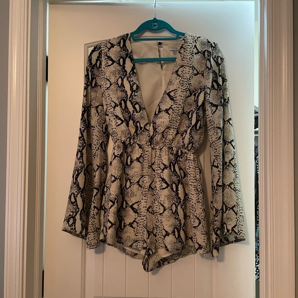 Low cut, flare sleeved snakeskin romper. Loose and float material, very comfortable