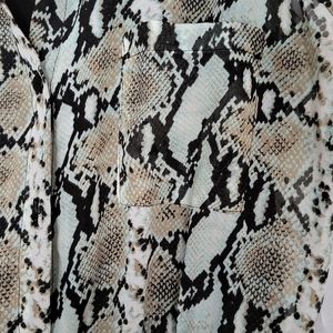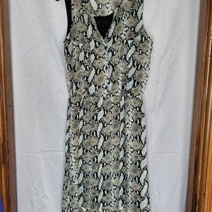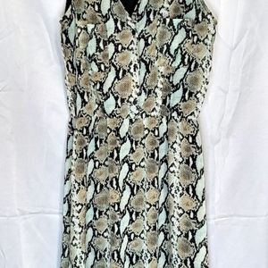 sheer snakeskin dress fully lined with black lining front pockets button front elastic waist