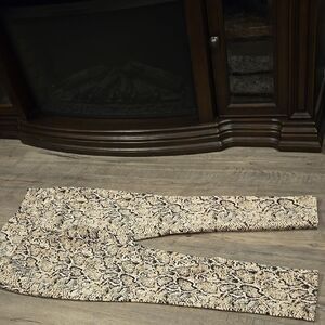 Streychy and Stylish snakeskin print leggings. Perfect for a bold look. Thicker material to wear as pants or as leggings. Excellent condition!