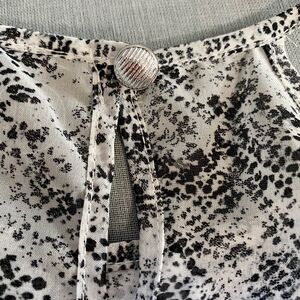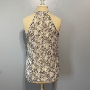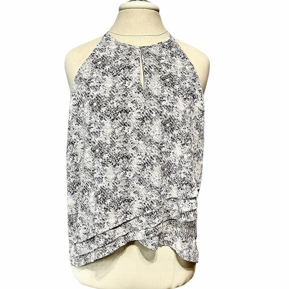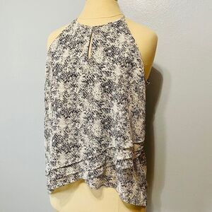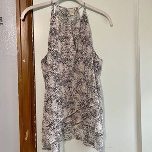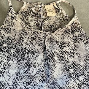 Lightweight, flowy material. Black abastract snakeskin print tank. Keyhole back with silver button closure.