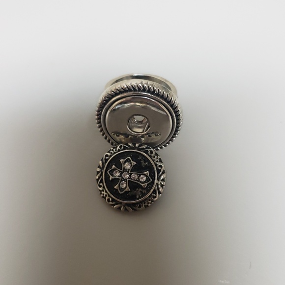 Silver with black and cross snap rhat fits on snap bracelwt ir necklace