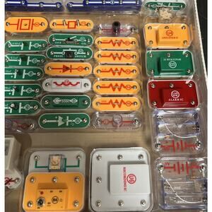 The projects range from simple circuits to more complex ones, and each one is designed to teach your child a new concept in electronics or electricity. All snap circuit parts are in excellent condition as well as the manual. I’ve listed the item 99% complete because it’s not clear based on all the additional parts that are included and what is noted in the manual. Box is in very good condition with minor wear consistent with storage and handling. See pictures for additional detail as they are part of the description. Any questions please feel free to contact me. From a smoke-free home.