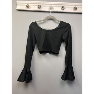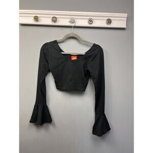 Snap Cropped Top Womens Small Black Bell Sleeves Stretch Festival Pullover