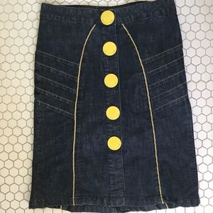 The side-piping and big front enamel buttons make this denim skirt fun and flattering!