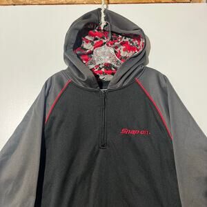 Snap On 1/4 Zip Pullover Fleece Gray Red Camo Hooded Sweatshirt Men’s Size XL