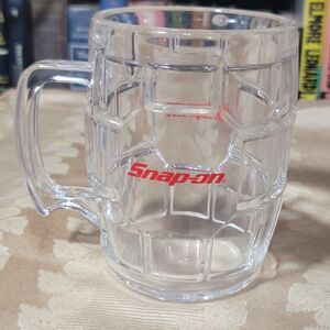 Nice New Snap-On tools acrylic beer mug 24 oz cup with a side handle. Crisp clear finish bright Red Snap-on tools logo/ insignia.