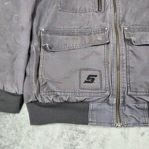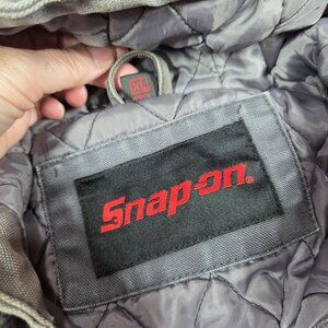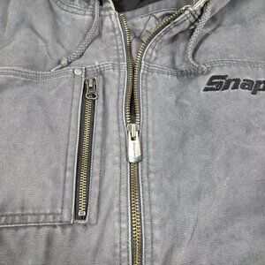 Snap On Tools Jacket Mens XL Gray Distressed Quilt Lined Hooded Canvas Coat