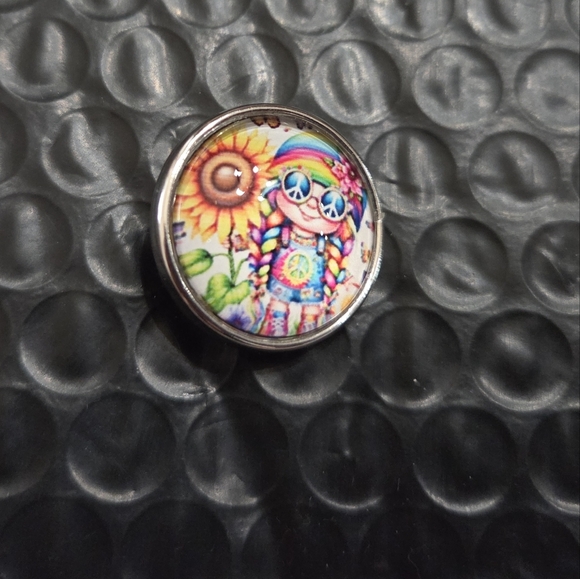 Vibrant Snap with peace sign. Features rainbow colors and sunflower. Perfect for adding a playful touch.