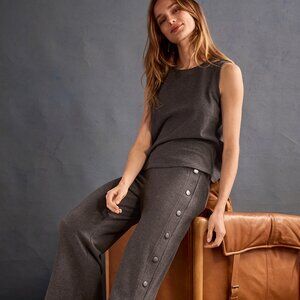 The Snap Top is crafted from a brushed knit fabric for a slim yet comfy fit, with decorative shoulder snaps and side slits. Made from the same fabrication as the Fall '24 Unwind Pant, it’s ready to complete any outfit in a snap—pair it with the Snap Crop for a particularly pulled-together look.
