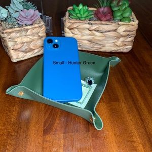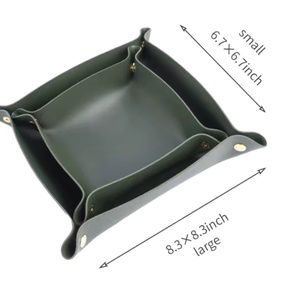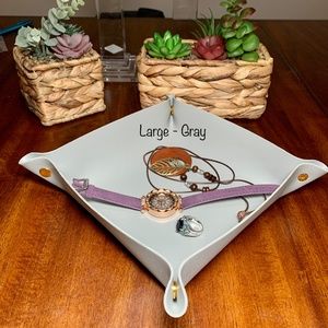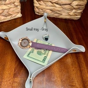 These Vegan Leather snap trays are excellent valet catchalls for jewelry, coins, money, keys, watch, makeup brushes, earplugs, cell phone, pens, glasses, organizing, hair pins, hair bands