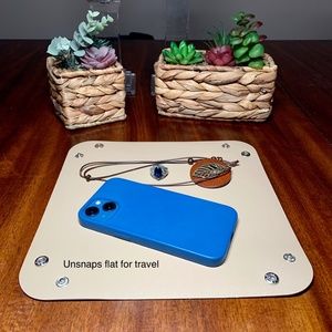 Ideal for travel or home! Unsnaps Flat for easy storage in suitcase, and keeps your bedside table clutter free. I keep one in my suitcase at all times, and one on a side table at home.