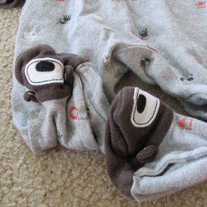 Snap Up Footed Sleeper Infant Boys 3-6M Gray Orange Brown Owl Moose Bear Jammies
