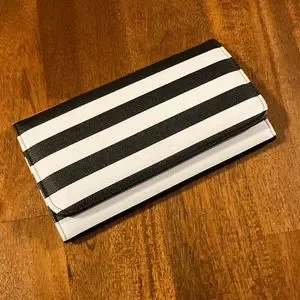 Snap wallet in great condition, new without tags. Super tiny blemish on the edge, as pictured in the last photo, but you cannot even tell when the wallet is closed. 7 slots for cards, plus a clear slot for your ID.