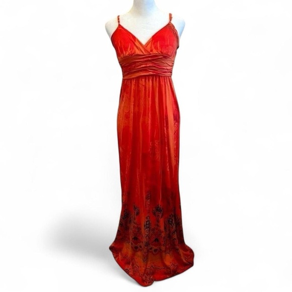Snap Women's Sleeveless Orange Maxi Dress Size Small Boho Y2K Tropical Beach