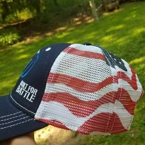 Red white blue mesh snap back hat